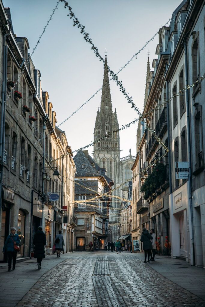 Le quartier historique s’articule autour de la place Saint-Corentin, dominée par les deux flèches de la cathédrale. Ce joyau de l’art gothique breton, dont la construction s’est étalée sur plusieurs siècles, est célèbre pour sa nef légèrement déviée. En flânant dans les rues piétonnes adjacentes, comme la rue Kéréon, on découvre de superbes maisons à pans de bois colorés abritant des boutiques d’artisans, des crêperies et des galeries d’art. Le Musée des Beaux-Arts, l’un des plus riches de l’ouest de la France, mérite également une visite approfondie.