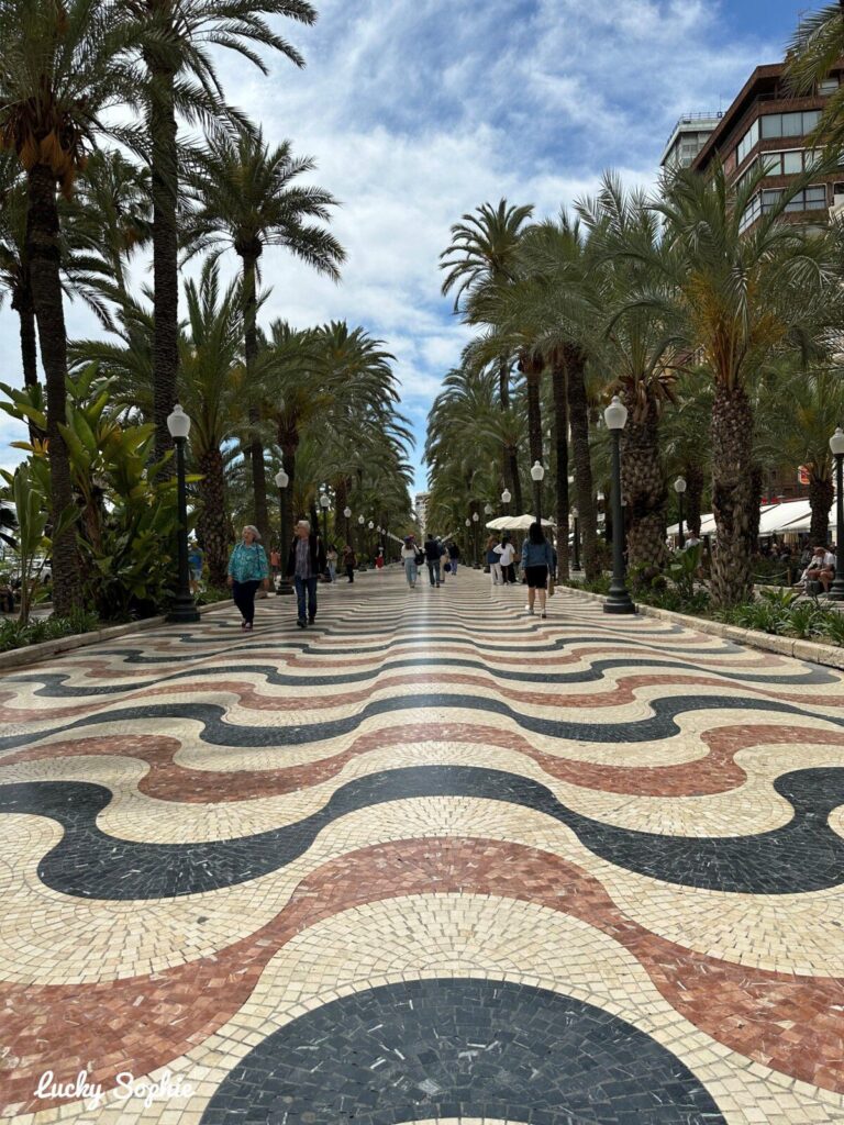 L’Explanada de España est sans doute la promenade la plus emblématique d’Alicante et l’un des lieux de rencontre favoris des habitants. Bordant le port de plaisance, cette large avenue piétonne est immédiatement reconnaissable à son sol unique et à son alignement de palmiers majestueux. C’est le lieu idéal pour une balade à toute heure de la journée, offrant une ambiance typiquement méditerranéenne.
