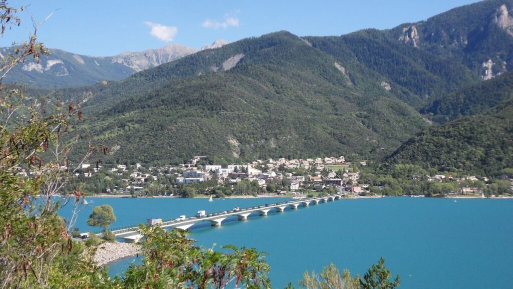 Après avoir exploré la richesse historique d’Embrun qui surplombe les eaux, notre parcours nous conduit vers un village à l’histoire plus récente, né des flots mêmes du lac et offrant une perspective radicalement différente.
